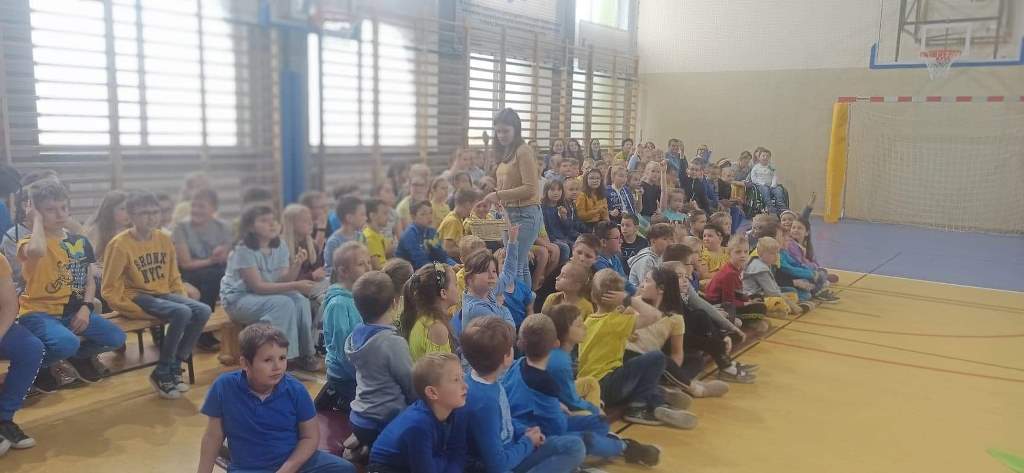 Oprócz przedstawienia, które wszystkim bardzo się podobało, dzieci odpowiadały na przygotowane przez uczniów pytania związane z językami obcymi, w szczególności z językiem niemieckim. Miały też okazję nauczyć się kilku słów po niemiecku oraz posłuchać i nawet zatańczyć w rytm piosenek, które śpiewają dzieci w Niemczech. Dzięki udziałowi w przedstawieniu uczniowie klas młodszych mogli poznać język niemiecki, którego będą się uczyć za kilka lat. Dla tych, którzy nie widzieli naszych aktorów zapraszamy na filmik, który nie powstałby bez pana Adama Kniaziewicza, któremu bardzo dziękujemy!!!