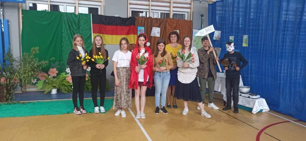 31 maja w naszej szkole był dniem poświęconym językom obcym. Z tej okazji odbyło się przedstawienie w języku niemieckim pt „Rotkäppchen” (Czerwony Kapturek) przygotowane przez uczniów klasy 7b wraz z panią Anną Wnuk. Wspaniałych aktorów, którzy świetnie wcielili się w swoje role, bardzo dobrze nauczyli się dość trudnych tekstów w języku niemieckim oraz pomysłowo przygotowaną scenografię, oglądali uczniowie klas 1-3 wraz z nauczycielami oraz dyrekcją.