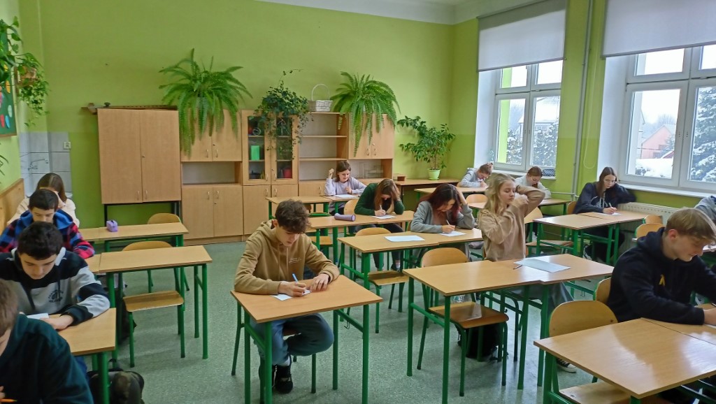 Chętni uczniowie (a było ich szesnastu) rozwiązywali test z języka angielskiego i niemieckiego, który to nie należał do najłatwiejszych, ale poradzili sobie z nim całkiem nieźle. Najlepszym okazał się Kacper Młynarski z klasy 8b. Kolejnymi wyróżnionymi zostali Rafał Burek z klasy 8a oraz Antonina Sarzyńska z klasy 8b. Wyróżnione osoby zostały obdarowane przez organizatorki konkursu drobnymi upominkami zakupionymi na organizowanym w szkole kiermaszu charytatywnym, z którego dochód przekazano na zakup prezentów dla wychowanków Domu Dziecka w Łopuszce Małej koło Kańczugi. Serdecznie gratulujemy i życzymy dalszych sukcesów nie tylko językowych.