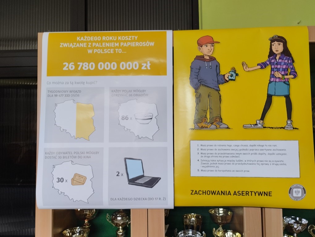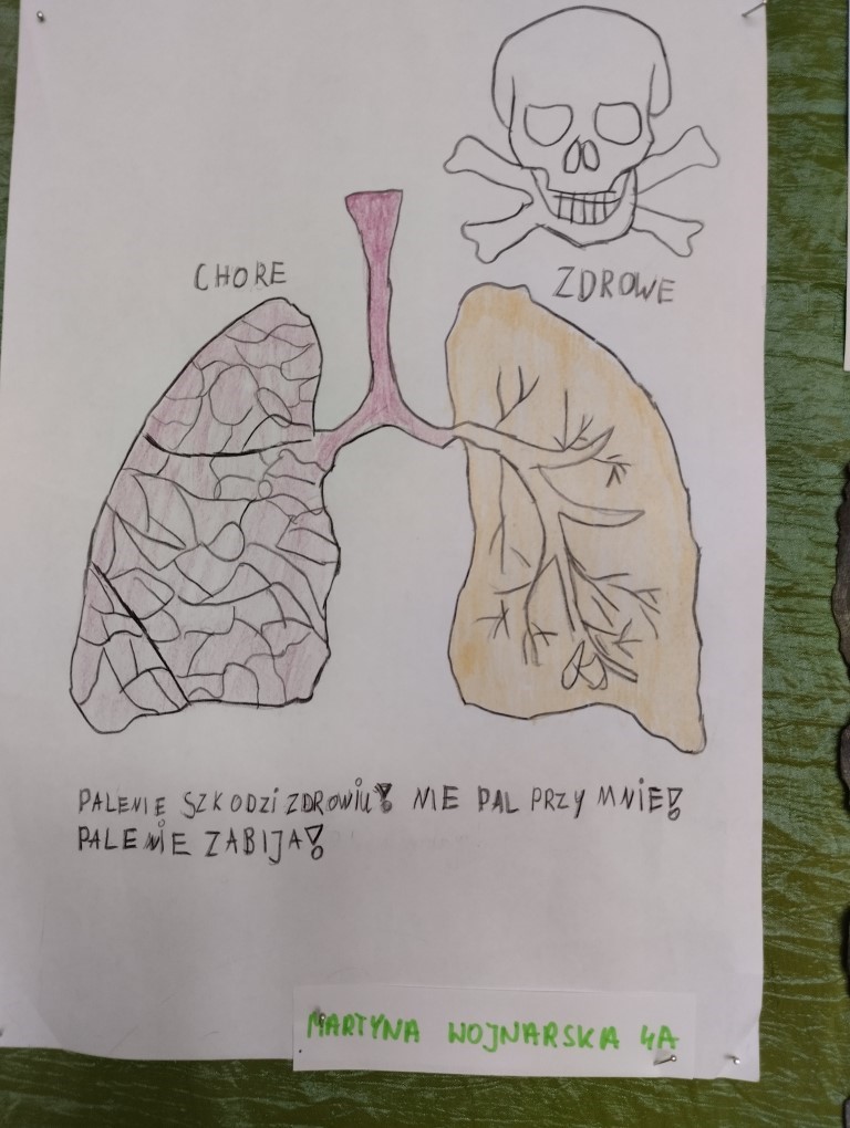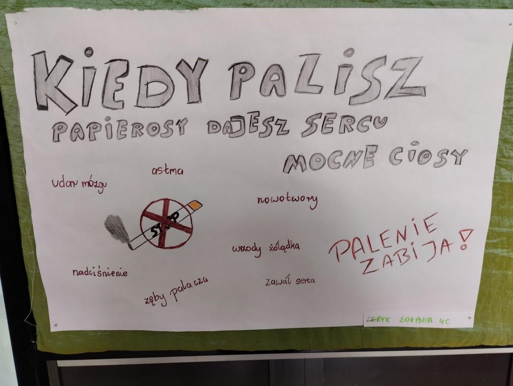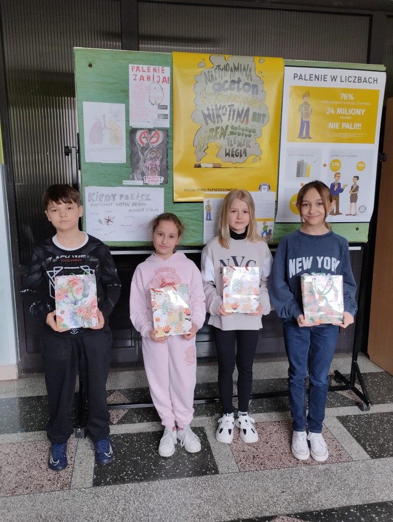 Podsumowaniem realizacji programu był konkurs plastyczny dotyczący szkodliwości palenia papierosów i e-papierosów. Uczniowie, którzy wykonali prace otrzymali drobne upominki a byli to: Martyna Wojnarska z klasy 4A, Dominika Czapla i Amelia Helit z klasy 4B oraz Eryk Żołynia z klasy 4C.