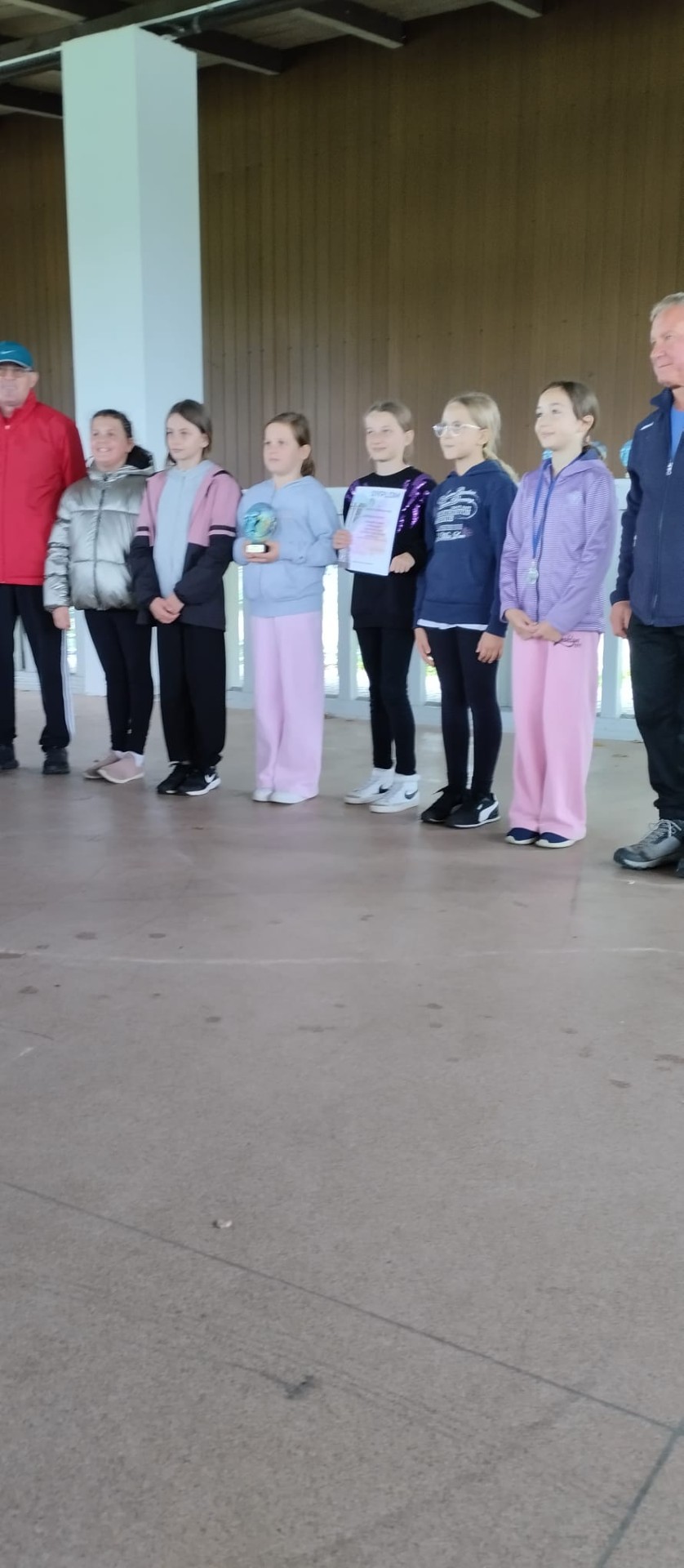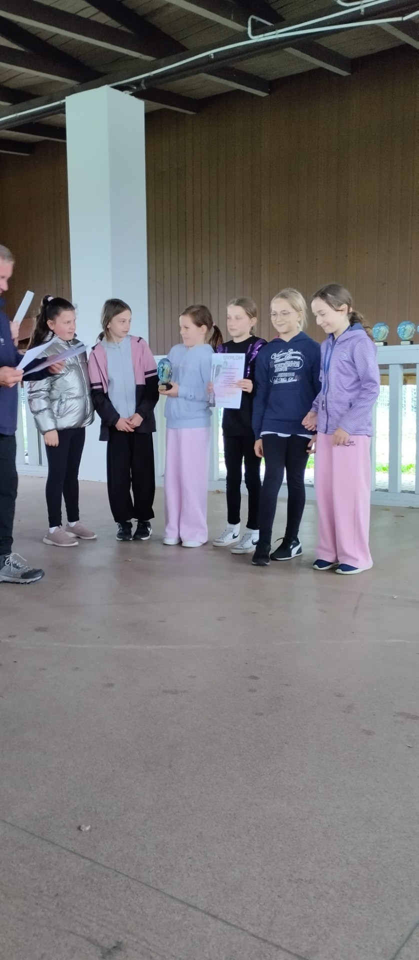 I miejsce dziewczęta z klas IV – kategoria dziewcząt rocznik 2015 i młodsze (bieg na 600m) – Iga Bosak, Pola Wierzbińska, Magdalena Kupras, Oliwia Bzdoń, Julia Daź, Izabela Czarny
