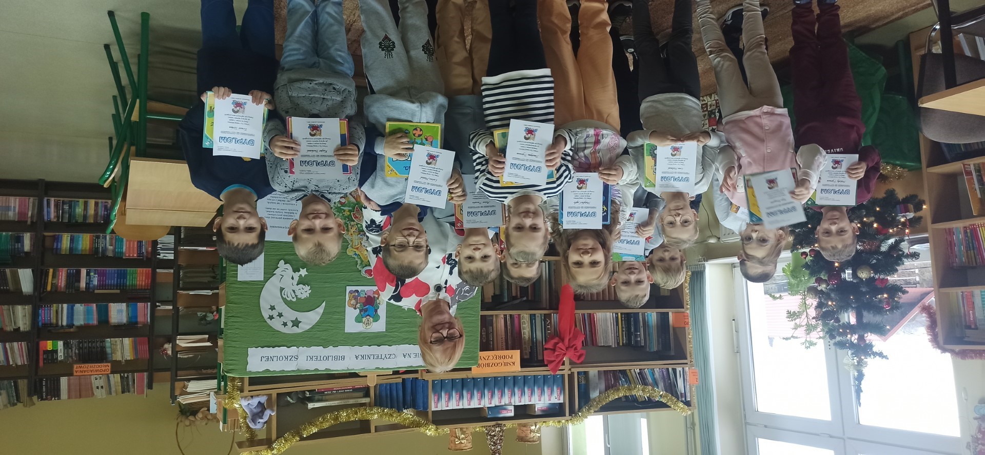 Skupione i poważne dzieci uroczyście przyrzekły, że będą kochać i szanować książki, korzystać z ich mądrości i sumiennie wypełniać obowiązki czytelnika. Po przyrzeczeniu nastąpiło uroczyste pasowanie uczniów na Czytelnika Biblioteki Szkolnej.