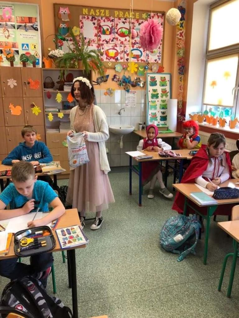 Na koniec bajkowych zmagań wszyscy uczniowie klas I – III oraz zerówek otrzymali kolorowe zakładki do książek wykonane przez członków Szkolnego Klubu Wolontariatu. Mamy nadzieję, że się przydadzą podczas czytania ulubionych bajek.