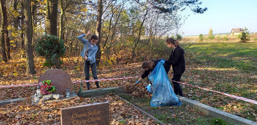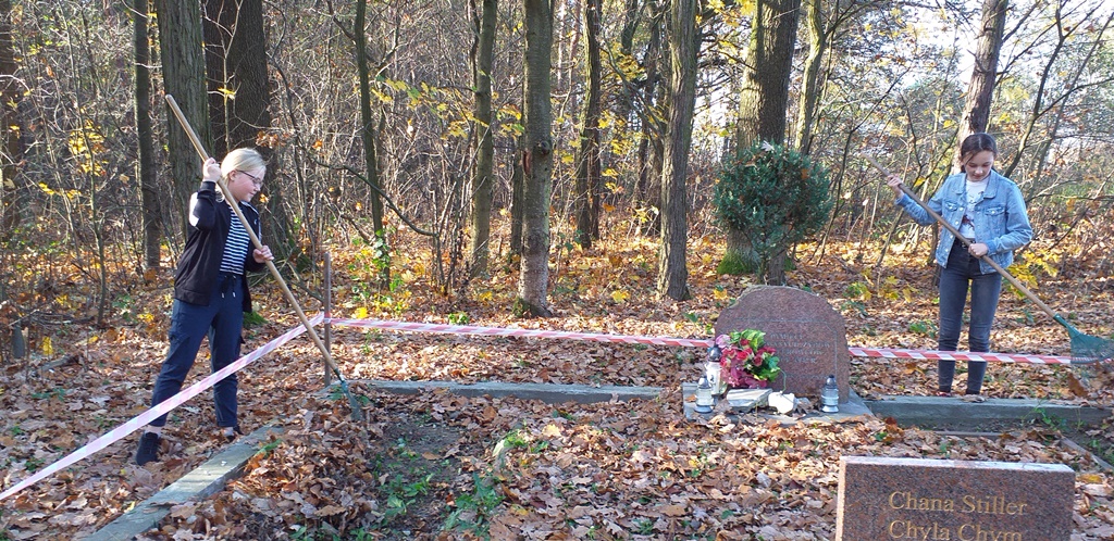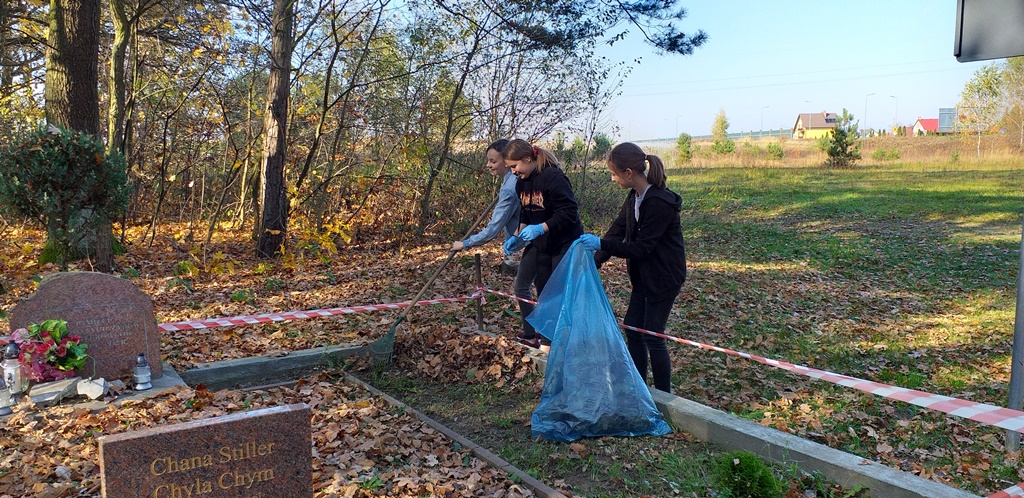 Uczennice klasy 6b, należące do Szkolnego Klubu Wolontariatu, wspólnie z panią Joanną Czop uporządkowały grób i jego otoczenie, a uczniowie klas 6b i 7b zapalili symboliczny znicz i złożyli kwiaty.