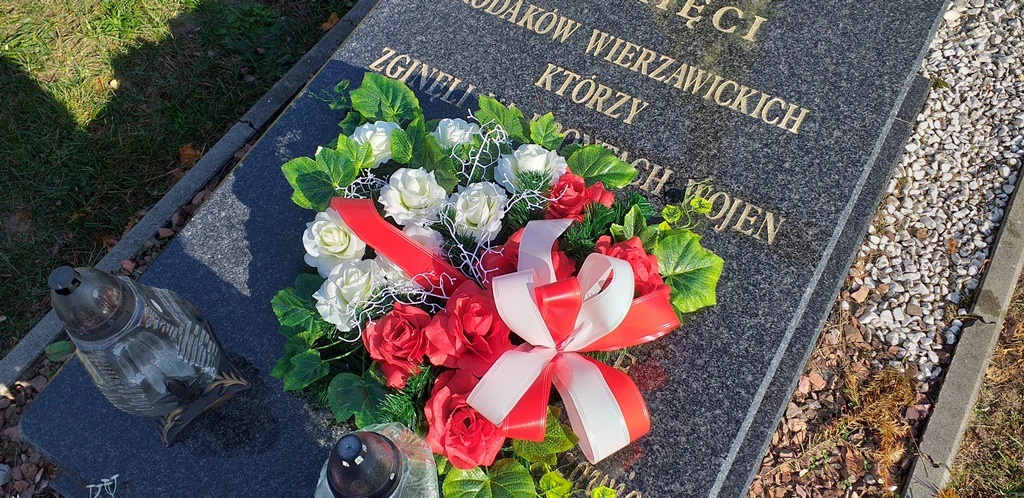 25 października odwiedziliśmy cmentarz parafialny, gdzie uczennice klasy 8a złożyły wiązankę kwiatów i zapaliły znicz na symbolicznym grobie poświęconym tym mieszkańcom naszej miejscowości, którzy zginęli w czasie wojny. Kilka lat temu uczczono ich pamiątkową tablicą umieszczoną w wierzawickim kościele. Znajdują się na niej nazwiska tych, którzy oddali życie w służbie Ojczyzny.