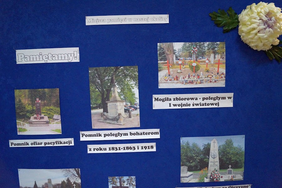 W ramach akcji członkowie Samorządu Uczniowskiego przygotowali gazetkę informacyjną poświęconą lokalnym miejscom pamięci.