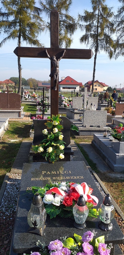 25 października odwiedziliśmy cmentarz parafialny, gdzie  uczennice klasy 8a złożyły wiązankę kwiatów i zapaliły znicz na symbolicznym grobie poświęconym tym mieszkańcom naszej miejscowości, którzy zginęli w czasie wojny. Kilka lat temu uczczono ich pamiątkową tablicą umieszczoną w wierzawickim kościele. Znajdują się na niej nazwiska tych, którzy oddali życie w służbie Ojczyzny.