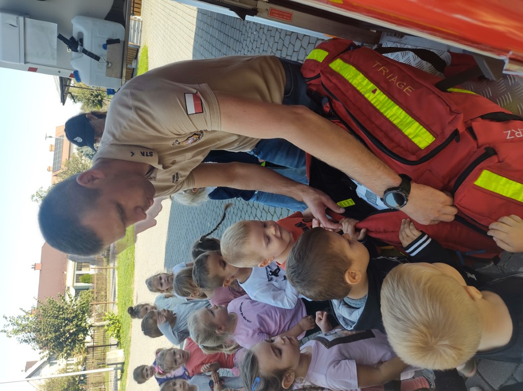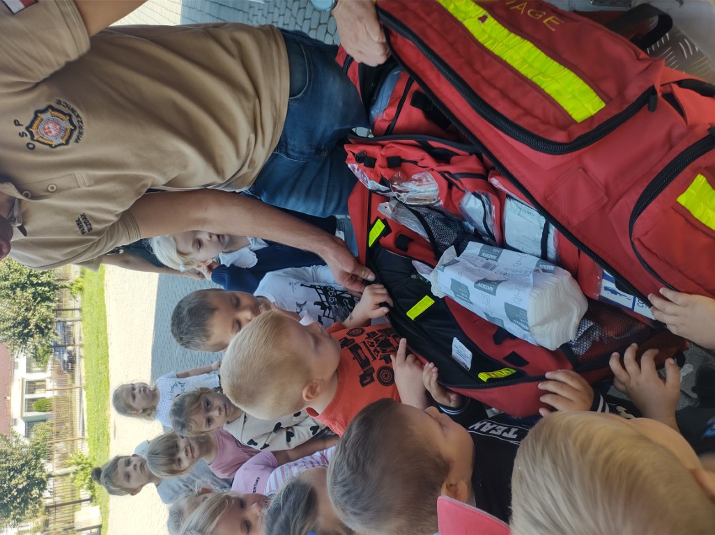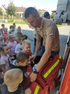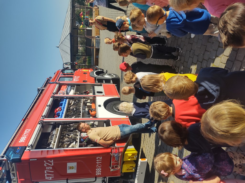 Dzięki życzliwości Panów Strażaków przedszkolaki mogły z bliska obejrzeć samochody i sprzęt pożarniczy. W trakcie rozmowy ze strażakami dowiedziały się dużo o trudnej, odpowiedzialnej i niebezpiecznej pracy.