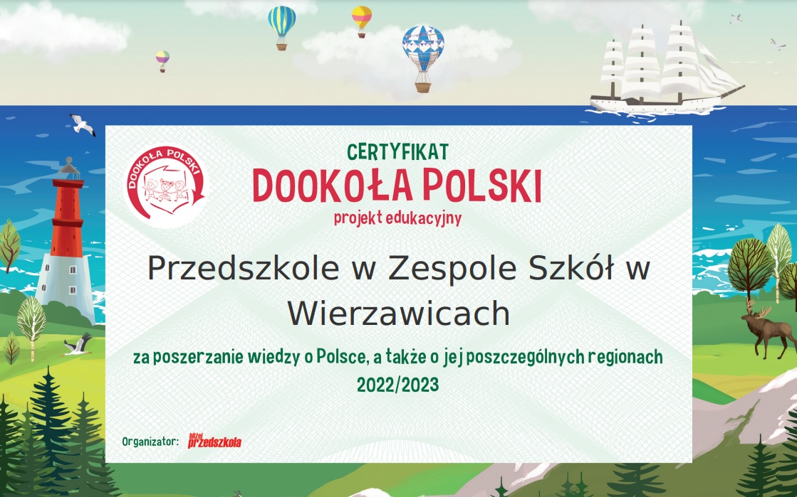 W roku szkolnym 2022/23 przedszkolaki wzięły udział w projekcie edukacyjnym Dookoła Polski.